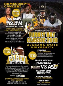 If You're looking for Seriously, Crazy, FUN? Be in Montgomery Alabama, THANKSGIVING DAY 2019 for ALABAMA STATE UNIVERSITY'S, "TURKEY CLASSIC" and Hang On!